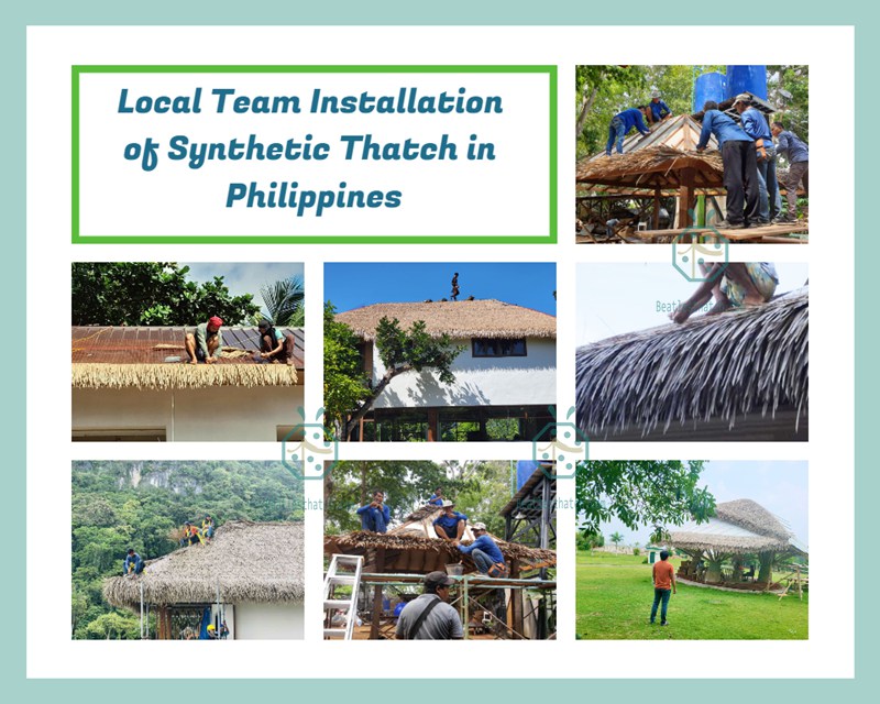Como el techo de paja sintética es mucho más fácil de instalar que el techo natural de nipa o cogon, por lo que, además de nuestro distribuidores locales podría ayudarle a organizar el Instalación de techo de paja nipa/cogon , podrías buscar tu empresas constructoras locales También para la instalación. Le brindaremos la asistencia necesaria para la instalación del techo de paja. Disponemos de un manual de instalación para su consulta.