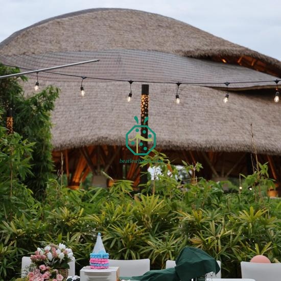 Las tejas de techo de glorieta tropical se suministran en Beatles. paneles de techo de mirador de reemplazo artificial de larga vida útil personalizarse de acuerdo con su cabaña en la playa, bali, bungalow o barbacoa restaurante diseños.