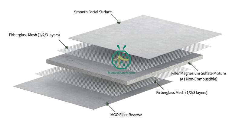 El tablero MGO está reforzado con múltiples capas de malla de fibra de vidrio, lo que le confiere una gran resistencia a fuertes vientos e impactos. Al ser un material mineral inorgánico, resiste los daños causados por las termitas y la corrosión por hongos, lo que lo hace mucho más fiable que los paneles de madera tradicionales.